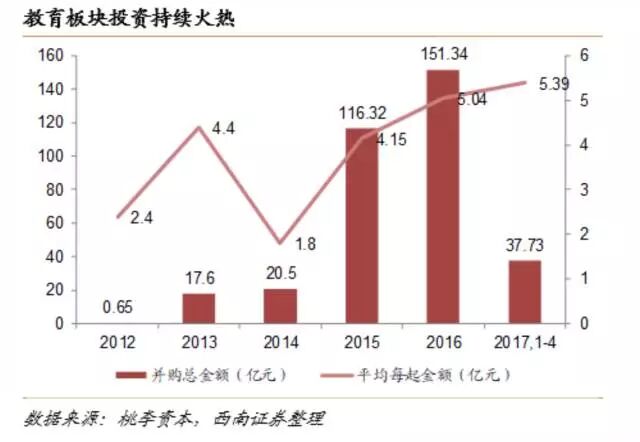 3)社会资本大规模涌入教育板块,进一步推动板块扩张。