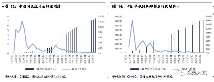 传媒各个子领域来看,影视剧、游戏、网络文学、新闻资讯、音乐接触用户渠道与互联网线上渠道已密不可分;电影接触用户渠道为线下影院。无论是线上互联网渠道、移动互联网渠道对用户的渗透,还是线下影院(银幕)供给密度不断增加,都大大促进了相关传媒子领域第一轮高速成长。