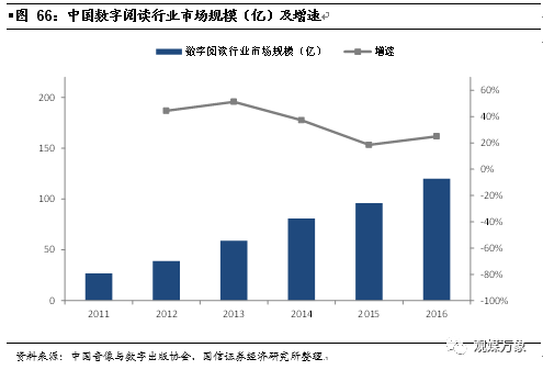 数字阅读市场规模持续扩大,2016年突破百亿规模。根据中国音响与数字出版协会数据,数字阅读行业自2011年后进入高速发展期,2015年后迈入成熟发展期,其发布的《2016年度中国数字阅读白皮书》显示,2016 年我国数字阅读行业市场规模达120亿元,同比增长25.0%,得益于2016年坚持不懈地打击盗版、净化网络文学平台。