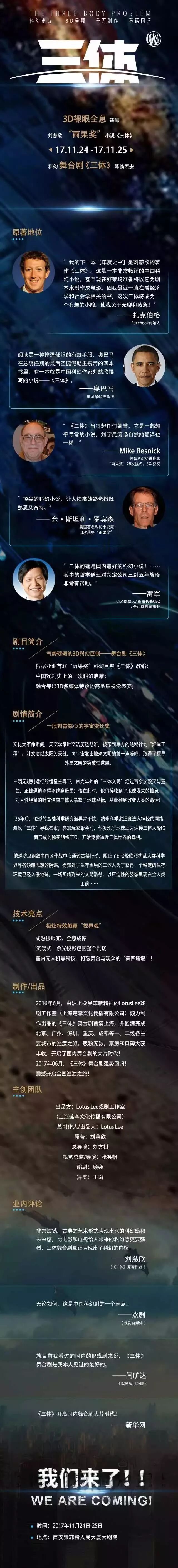 5、史诗级科幻舞台巨制《三体》门票现已开售,您可在大麦网/永乐票务/娱票儿等查询购买,如需直接购票,可点击文末“阅读原文”