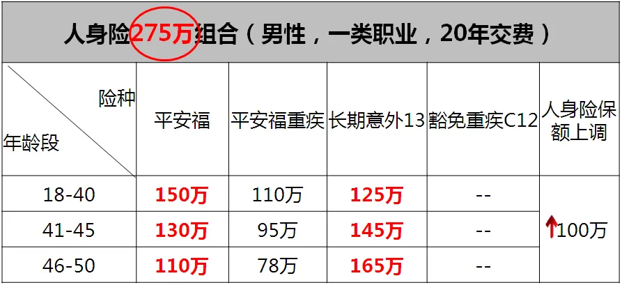 若客户无既往投保记录,本次无异常健康告知,按平安福规则及2014版荣誉业务员制度,50岁以下客户如下组合人身险保额275万可为三免件。