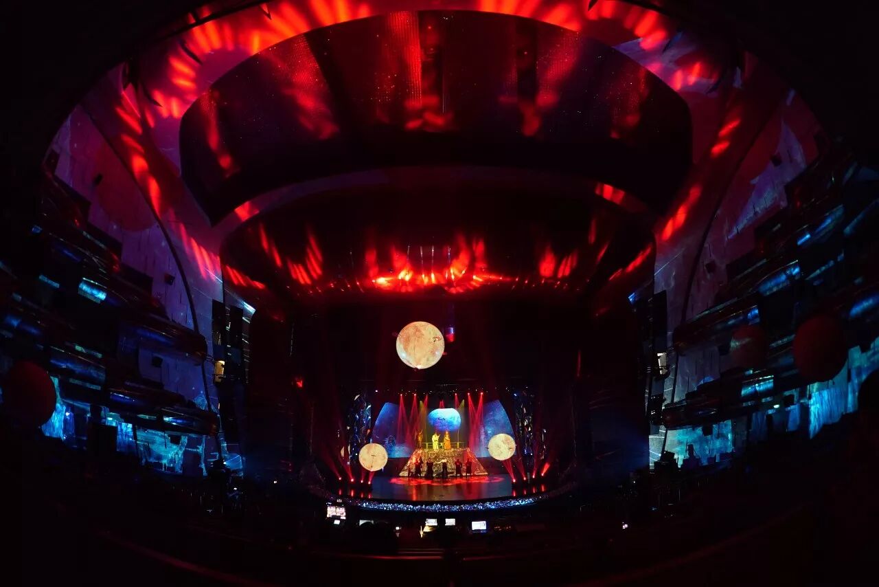 刘方祺:毕竟剧目是科幻题材,是现实中没有的东西。电影可以用后期制作,舞台是即时演出,要如何呈现呢?例如粉丝印象最深刻的“三日凌空”场景,我们直接动用无人机把三颗氦气球吊起来,展示三体运动的轨迹。这三颗太阳覆盖了整个剧场,悬在观众头顶上,最后连成一线,毁灭世界……这也是舞台剧的优势,我们的剧场是环形,可以270度的包围观众,不同角度都是场景的一部分。