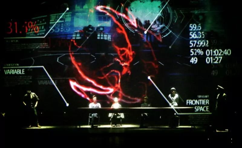 刘方祺:肯定是“审判日号”被纳米丝切割那段,是全剧的高潮,也是我最满意的片段之一。在听觉上,我们的音效团队用了一种独特方法,把金属与“丝”摩擦的声音表现出来,还起了个名字叫“Metal Screaming”(金属的咆哮)。在视觉上,观众会觉得自己身处“审判日号”内部,观看切割的全过程。船体被切割的同时,光网表现的纳米丝会移动,扫过每一个观众的身体——每个人都会产生被切割的感觉,这是戏中比较虐观众的地方了。