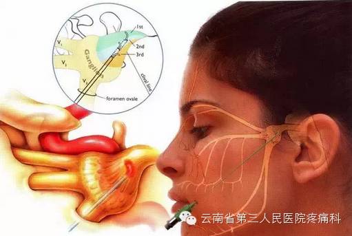 经皮穿刺半月神经节射频热凝术是治疗三叉神经痛最有效方法之一治疗原理:三叉神经为感觉神经,其中神经纤维(AA纤维和AB纤维)能耐受较高温度,而痛觉神经纤维不能耐高温,CT引导三叉神经热凝术选择破坏痛觉纤维,使患者疼痛治愈。 治疗优势:安全、疗效好、不易复发、无副作用、费用比手术治疗低、创伤小、痛苦小、治疗时间短。此项技术的重要环节在于靶点穿刺的准确性,利用CT引导或3维重建技术,可以使穿刺成功率和有效性大大提高。证疗效及安全的另一重要环节为热凝温度选择科学性。1.搜索公众号“云南省第三人民医院疼痛科”点击关注