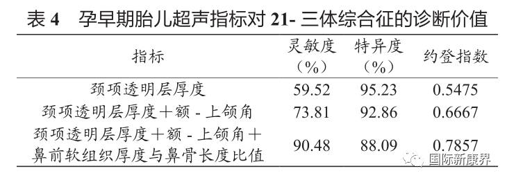 2.4、孕早期胎儿超声指标对21-三体综合征的诊断价值