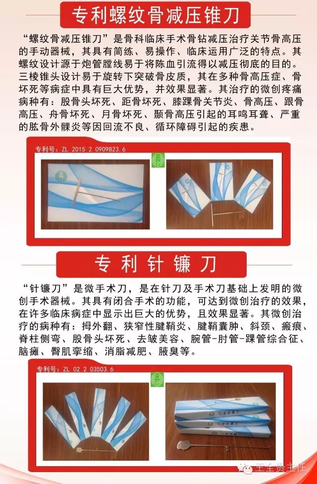 ②专利针镰刀疗法:突破传统微创理念将不可治变为可治疗(国家专利号ZL02203503.6);