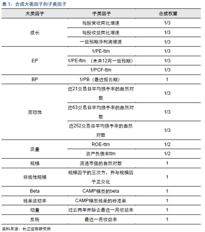EP、BP、流动性、规模、非线性规模、beta、残差波动率、反转、动量、质量,合成
