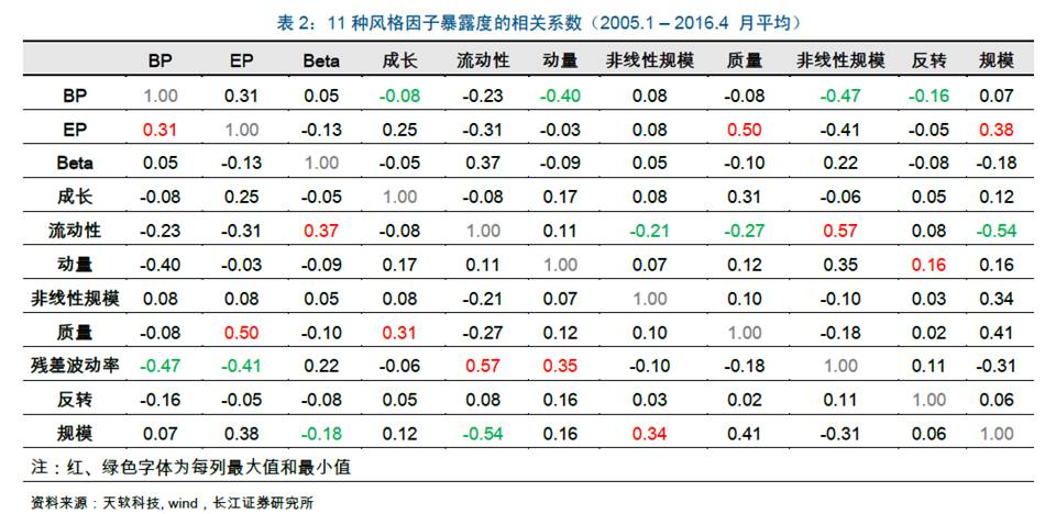 益,与大部分其他纯因子组合的收益的协方差都小于零。