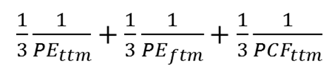 1/3 每股营收同比增速 + 1/3 每股收益同比增速 +1/3 一致预期净利润增速