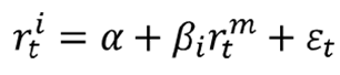 其中,收益率均为扣除无风险收益率后的收益。通过广义最小二乘法(GLS)计算beta 值,数据取过去252 个交易日的日收益率数据,回归权重为指数衰减加权,半衰期63 个交易日。