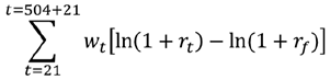 过去两年(扣除最近1 个月)的对数收益率的加权平均: