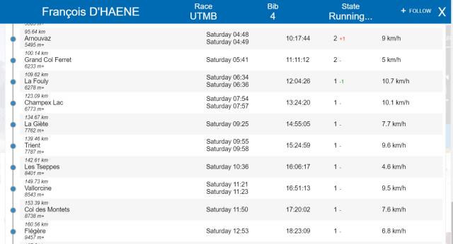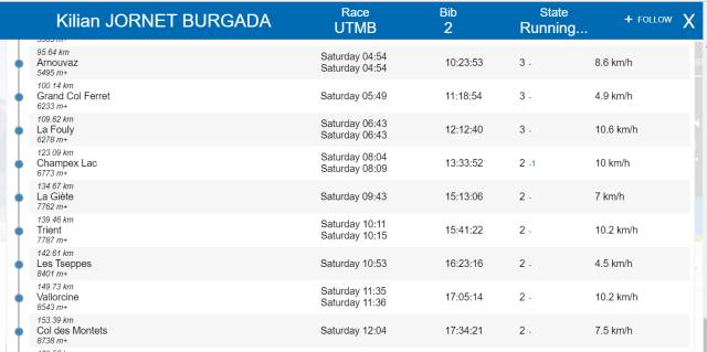 就这样,两人都以大幅度领先赛道纪录的节奏穿行在UTMB的赛道中,彼此的存在和压力使得俩人完全不敢停歇,UTMB15年来最精彩激烈的对决让所有人激动不已。