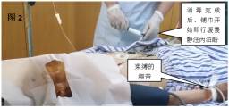 1.3.2麻醉(见图2):采用丙泊酚静脉麻醉,用量为1ml/kg,缓慢静脉注射后约1min左右,患者意识丧失后即可穿刺,不必局麻;故术者消毒完成后、铺巾开始即行缓慢静注丙泊酚。