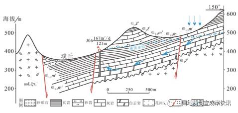 沂源县璞丘地下水富集带水文地质剖面