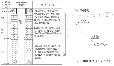 K6钻孔简易柱状图及抽水试验Q-S曲线
