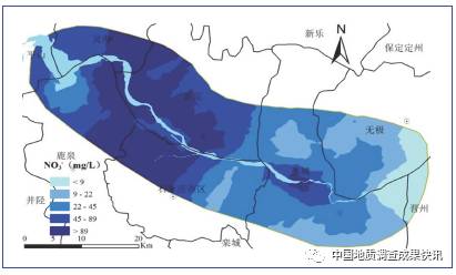 京津冀太行山前硝酸盐浓度等值线图