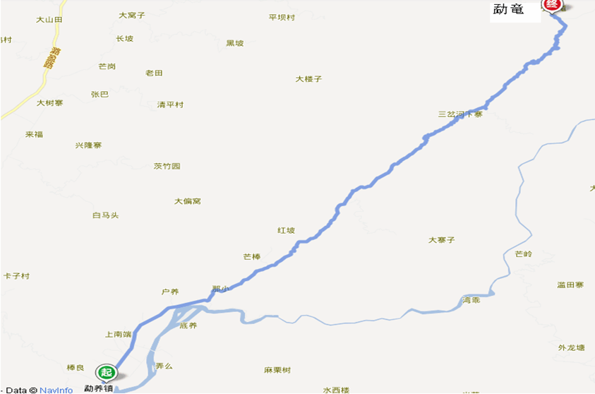 从梁河县勐养镇政府出发,沿勐小公路途经三岔河林场至小厂勐竜(全程30公里沥青路面,途经梁河县五乡十八景:野鸭湖、勐养江风景区、榕树林、葫芦丝发祥地、老熊谷瀑布)。
