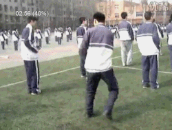 随着早操的铃声响起,我们的镜头跟随着他们来到了操场,听一位同学介绍,曾有位叫小明的同学,因私自练习广播体操,导致走火入魔。