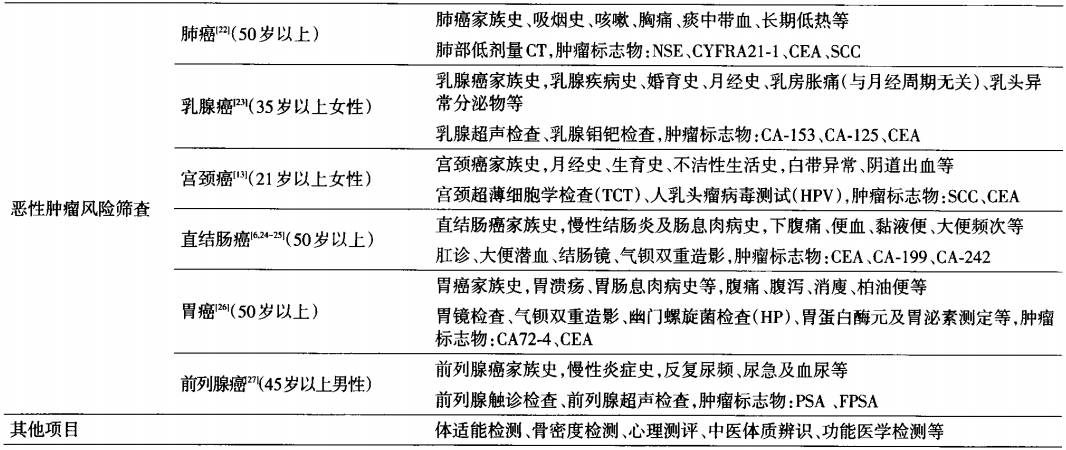 2013年,中国首次推出健康体检基本项目专家共识,参考美国现行指南,对恶性肿瘤风险筛查提出了建议(见下图)。