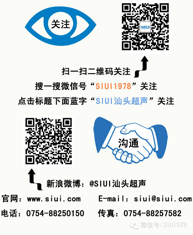 非常感谢您对SIUI汕头超声的关注与支持。本订阅号所转载的文章均来源于互联网并注明"稿件来源",仅以促进学术交流、学习之目的,所有转载的文章权、责均属作者本人所有,如其他媒体、网站或个人从本订阅号转载使用,必须保留本订阅号注明的"稿件来源",并自负版权等法律责任。