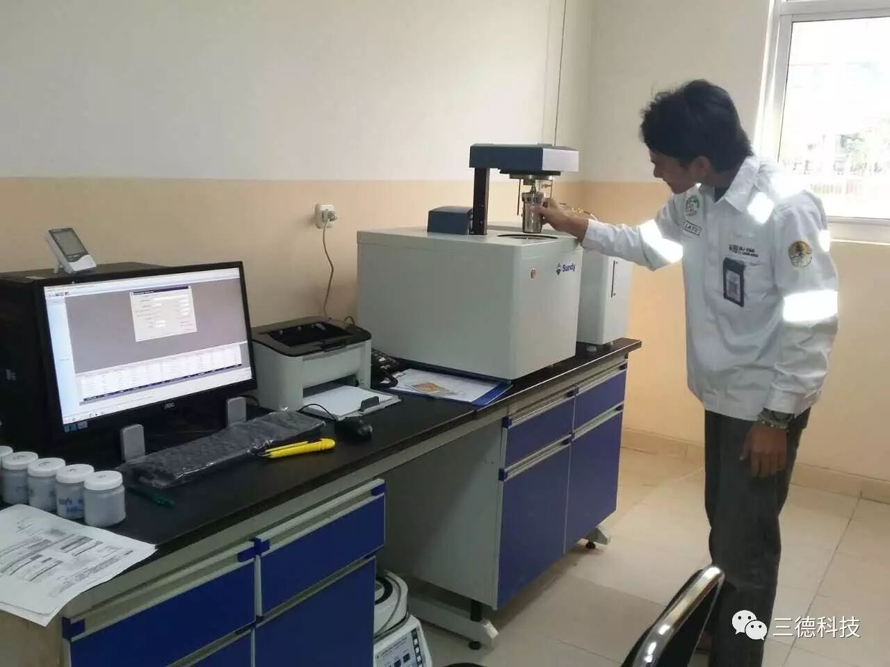 三德科技国际贸易部相关人员介绍,此次投运的SDAC6000量热仪于3月中旬开始调试、月底通过当地第三方权威检测机构PT.B公司的鉴定。负责鉴定的PT.B公司工作人员表示,鉴定过程中,SDAC6000量热仪的标定热容量、反标数据表现出色、标煤实验的结果亦完全满足要求。T电厂曾使用过其他品牌的量热仪,工作人员W先生反映, SDAC6000在一些自动化方面的细节设计让其耳目一新,同时测试准确性、运行稳定性改变了他对“Made in China”的固有印象。