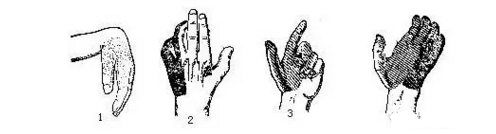 正中神经在臂部损伤时可累及全部分支,表现为前臂不能旋前,屈腕无力,拇、示指不能屈曲,拇指不能对掌,鱼际肌萎缩,手掌平坦,称为“猿手”。感觉障碍以拇指、示指和中指的末节为明显。亦可见明显的血管收缩和营养障碍。