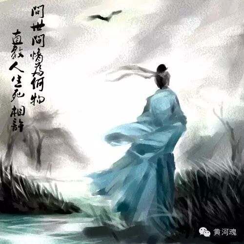词的开篇即破空而来:“问世间、情是何物?”这一问,直贯千古。正可用陈子昂所述,是“前不见古人,后不见来者”之问。诗人自答:“直教生死相许”。这一震撼人心的回答,打垮了世间对于情为何物的所有回答。当以生死相许时,还有何物、何事、何语、何誓能代替呢?![]()