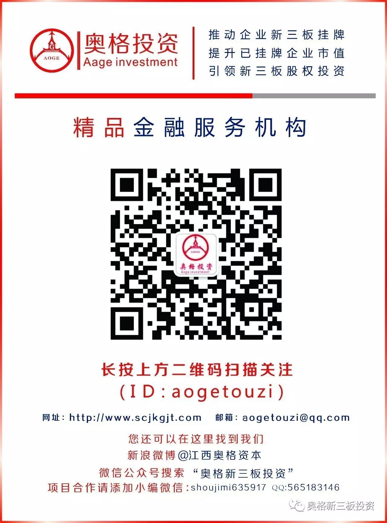 江西首家也是唯一“新三板孵化器“”落地奥格投资,着力推动企业新三板挂牌,提升已挂牌企业市值,将成为江西新三板企业最好的孵化器和助推器。