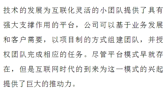第二,HR三支柱撬动了人力资源大数据管理。HR三支柱是一种平台化管理,它是基于信息化把员工的结果数据、行为数据、过程数据,以及心理数据统一在一个平台上,这样有利于人力资源管理实现大数据管理,有利于人力资源管理提高决策的准确性,有利于时代对人力资源管理服务的标准化、模块化和个性化趋势。