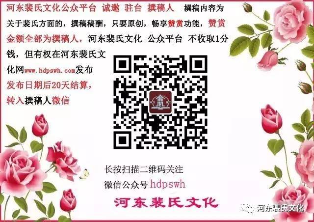 河东裴氏文化网 二维码,长按上面二维码,识别图中二维码,进入河东裴氏文化网