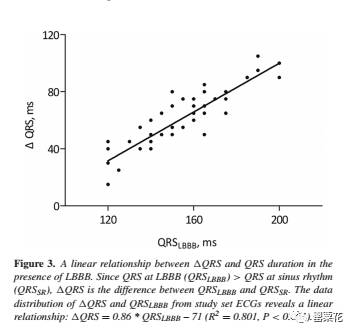 A New QT Formula for LBBB. Introduction: QT prolongation is an independent risk factor for cardiac mortality. Left bundle branch block (LBBB) is more common in patients as they age. Widening of the QRS in LBBB causes false QT prolongation and thus makes true QT assessment difficult. We aimed to develop a simple formula to achieve a good estimate of the QT interval in the presence of LBBB. Methods and Results: To determine the effect of QRS duration on the QT interval, QRS and QT were measured in sinus rhythm and during right ventricular apical pacing in 62 patients (age 55 ± 11 years, 60% male) undergoing electrophysiology studies. A QT formula for LBBB (QT-LBBB) was derived based on the effect of increased QRSLBBB on QTLBBB. The predictive accuracy of the QT-LBBB formula was then tested in 22 patients (age 66 ± 13 years, 64% male) with intermittent LBBB with comparisons to prior QT formulae and JT index. On average, the net increase in QRSLBBB constituted 92% of the net increase in QTLBBB. A new formula, QT-LBBB = QTLBBB – (0.86 * QRSLBBB – 71), which takes the net increase in QRSLBBB into account, best predicted the QT interval with heart rate corrected QTc in the test set of LBBB ECGs when compared to the baseline value and prior formulae. Conclusion: The QT-LBBB formula developed in this study best estimates the true QT interval in the presence of LBBB. It is simple and therefore can be easily utilized in clinical practice.