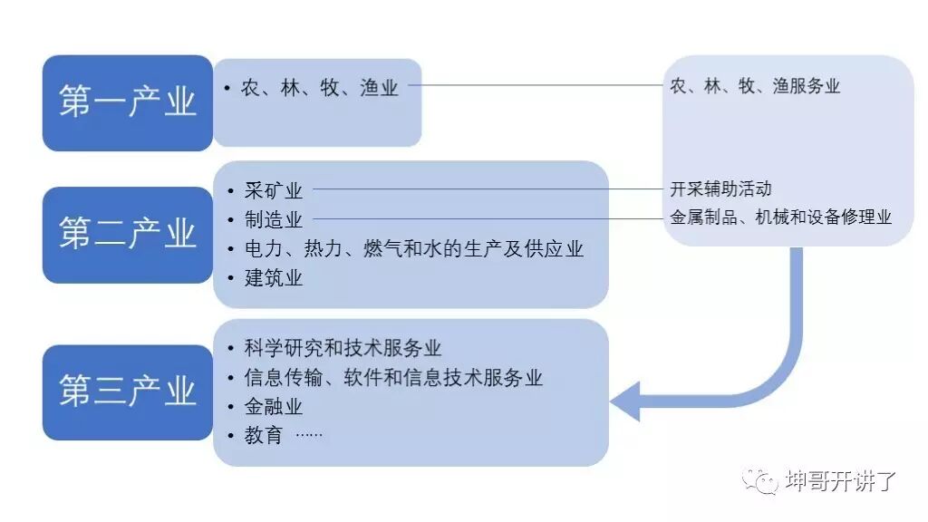 我们还知道经济学上有个三次产业的说法。按照一般印象,第一产业就是农业,第二产业是制造业,第三产业是服务业。其实这样的印象基本上就能大致对各行业所属产业区分出来,不过不是准确性就差了些。