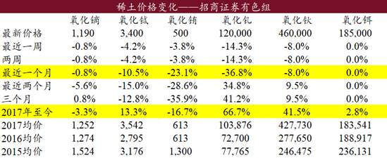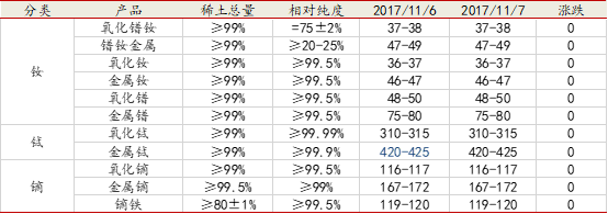 11月7日,稀土市场保持稳定。经历前一段时间的价格的下跌后,镨钕价格逐渐稳定。近一周来,氧化镨钕下跌9.1%,镨钕金属下跌7.3%,氧化铕下跌3.8%,氧化镝下跌0.8%,氧化铽下跌4.2%,氧化铽下跌4.2%,氧化钆下跌14.3%,氧化镨、氧化镧、氧化铈、氧化铒价格基本持稳。