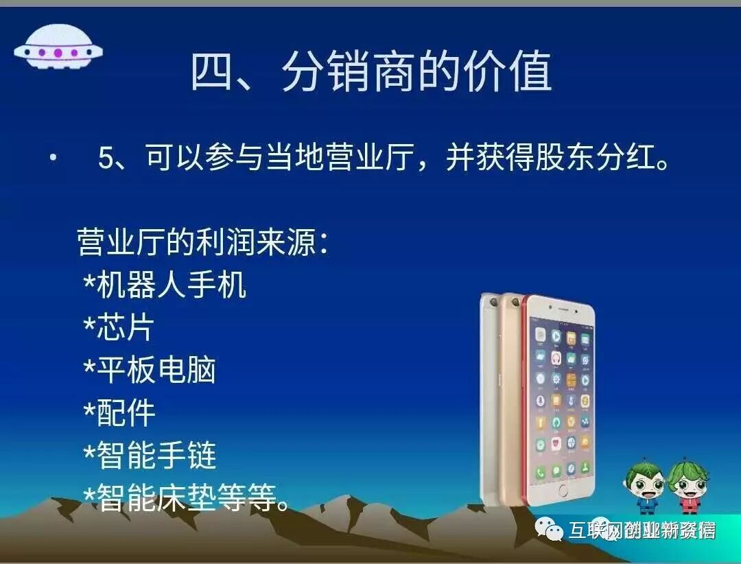 其次,我们今天面向全球招募分销商,分销商的门槛很低,只需要购买一部手机就可以成为我们的分销商,今天如果要成为其他品牌手机的分销商,起码几十万的资金;我们宇飞来F9手机最大的优势就是给到更多人一个创业机会,能够让更多人参与到通讯行业,参与到手机行业,参与到互联网行业中来。