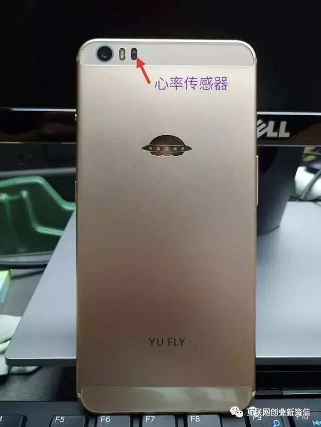 5、心率传感器可以直接透过玻璃面板去检测心率,这大大地提高了检测的准确性。这些都是对制造工艺的挑战,同时也体现了宇飞来的设计和工艺方面的实力。背部还有宇飞来的飞碟Logo,比被咬了一口的苹果更霸气有木有?哈哈!飞碟Logo稍微有点凹,没有与背部机身平行,这样做的好处是避免了当手机与平面物体接触时,平面物体表面的颗粒把Logo刮花的情况。多么贴心的功能,你还真别说,不信?你把苹果的手机放桌面上摩擦几下看Logo会不会被刮花。背面图如下: