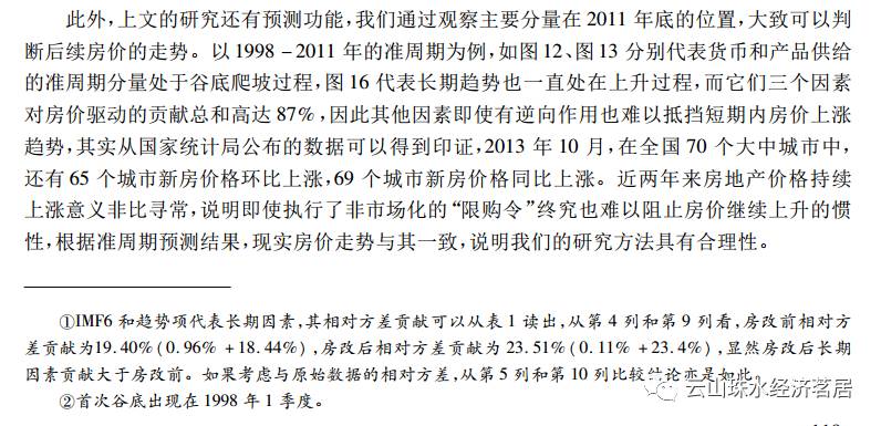 本文尽管冠名为周期研究,其实从分解过程来看就是研究房地产价格影响因素的实证分析,全文的很多结论还有待更加合理的解释,而其中解释货币为何更多地流向房地产市场而不是其他资产市场是笔者接下来研究的方向。