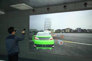 在东风日产的AEP先进工程技术中心,就有这样一个特殊的房间。这里有巨幅的投影设备和VR装置。工程师们戴上VR眼镜和手柄后,遍布墙壁的多个运动跟踪摄像头会对其进行监测,用户可以加载车辆CAD模型,将它们置于不同的环境中,然后在汽车周围走动就好像自己身处真车旁边一样。