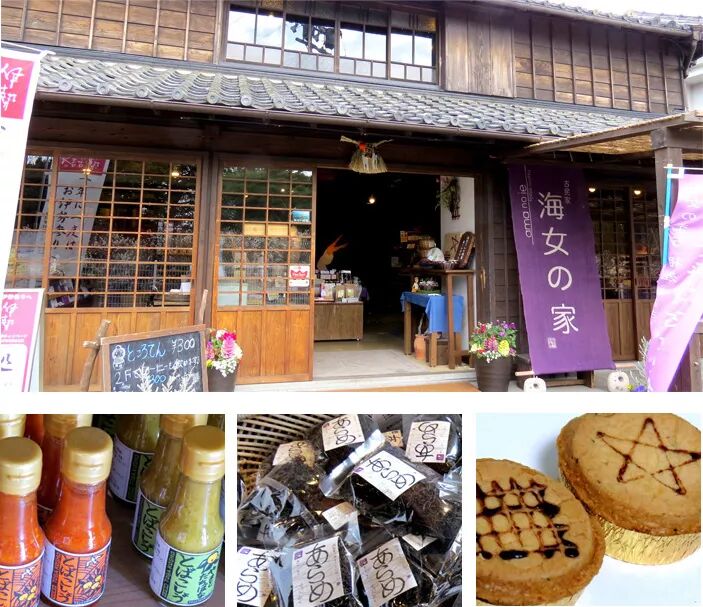 这家店位于石神女神的参道上,虽然是参拜之余顺便路过的店,但去过一次仿佛就被深深的吸引了。在旧式民宅改装的店内,1楼可以购买以海女的护身符「セーマン·ドーマン」为主题制作的土特产,牡蛎酱油等海产品加工制品。2楼的咖啡馆能品尝到凉粉(300日元)等美食。