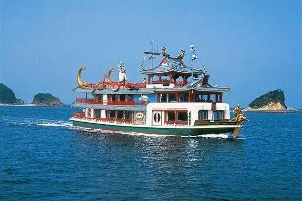 从鸟羽海运码头出发,经海豚岛和真珠岛,到鸟羽水族馆门前停下,大约50分钟的巡游。可以在中途的海豚岛下船,观看每天都有的海豚和海獭的表演,享受与海豚相互接触的乐趣。以龙宫城和鸟羽市的市花为主题的游览船的装饰也很华美和独特。