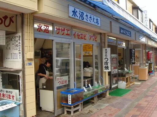 在鸟羽站的旁边,照旧有一条具有怀旧气氛的极好的商店街,也可以叫做“烤贝街”,排列着现场烤制新鲜贝类的专卖店。射干贝2个540日元,带壳烤蝾螺2个600日元等等。(费用因店铺而不同)让我们逛逛商店品尝鸟羽特有的珍稀贝类吧!