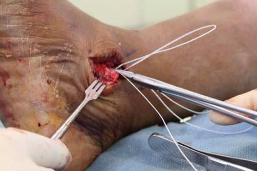 ? 图3 缝合三角韧带至内踝
