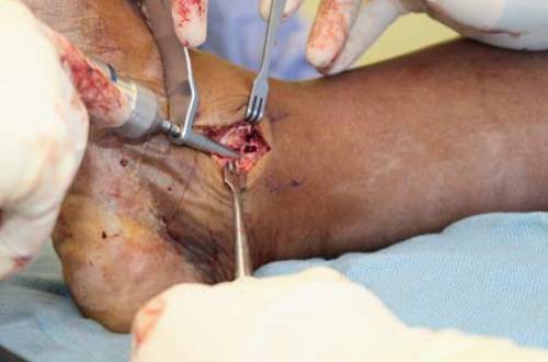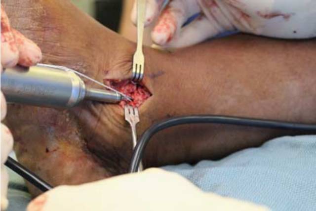 ? 图2 在内踝植入缝合锚钉