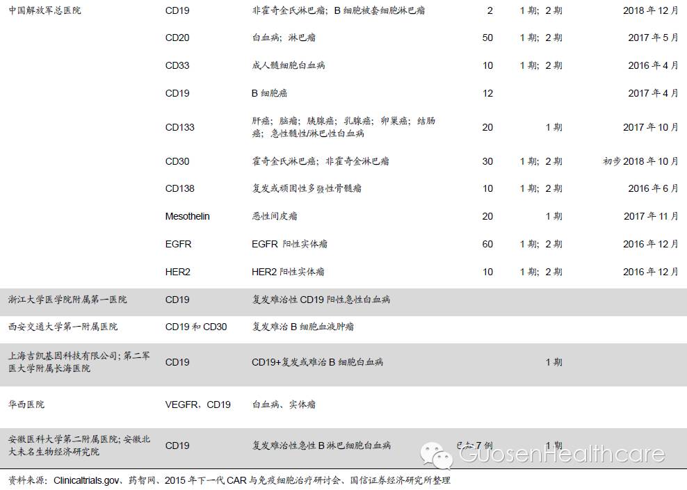 国信证券长期关注海外前沿科技进展,曾发表《冰与火之歌——技术的游戏:纳斯达克生物科技指数强势之谜》。在报告中我们总结趋势之一即为西学东渐,中国在生物药领域快速进步。在《医药行业2016年投资策略:新技术,新模式,新消费》的年度策略报告中,我们看好精准诊断、精准治疗等新技术方向。2016年1月,我们在《基因测序行业专题研究:基因检测的蓝海,液体活检迅速崛起》报告中对精准诊断做了进一步介绍。当前国内过继免疫细胞治疗临床试验进展仅次于美国,成为精准治疗主题投资看点,在此我们将向投资者介绍近期海内外过继细胞治疗行业前沿信息。本篇为报告的“行业分析篇”,后续将给您带来“海外标的篇”和“国内标的篇”。(点击左下阅读原文可阅读海外标的篇)