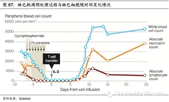 2)临床中没有淋巴耗竭的情况下输入的T细胞很难维持,而有预处理的情况下在一个月后仍然可以占外周血CD8+T细胞的多数;