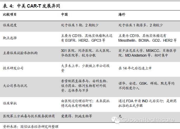 CAR-T细胞治疗中国临床仅次于美国,技术进度相若但是曝光程度欠佳。如前所述,我国临床数量在Clinicaltrials.gov上已经排在“榜眼”位置,但是我们了解到的信息来看,存在大量研发和临床并没有在该网站注册,原因主要有以下: