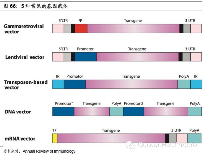 各种载体各具优缺点。慢病毒载体、非病毒转座子载体,直接RNA电转是主要的载体/转染方式:反转录病毒只能感染正在复制的细胞,效率较低;慢病毒是反转录病毒中唯一能感染非复制状态的一类,效率提高。病毒载体往往只能一次使用,人体会对病毒蛋白产生抗体,第二次遇到时失效;转座子和裸DNA载体价格便宜,较为简单,但是效率需要提升;mRNA电转进入只是暂时表达,安全性提升,但是无法持续表达。