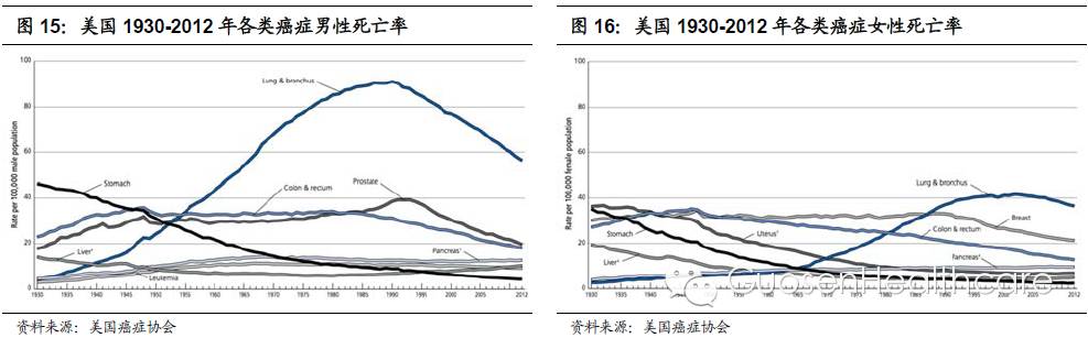 ,但是在90年代初禁烟教育运动之后已经大幅降低了近一半,血液癌的人数相对比较稳定。其次是前列腺癌和结肠癌。女性癌症整体死亡几率比男性低,除肺癌外主要是乳腺癌。