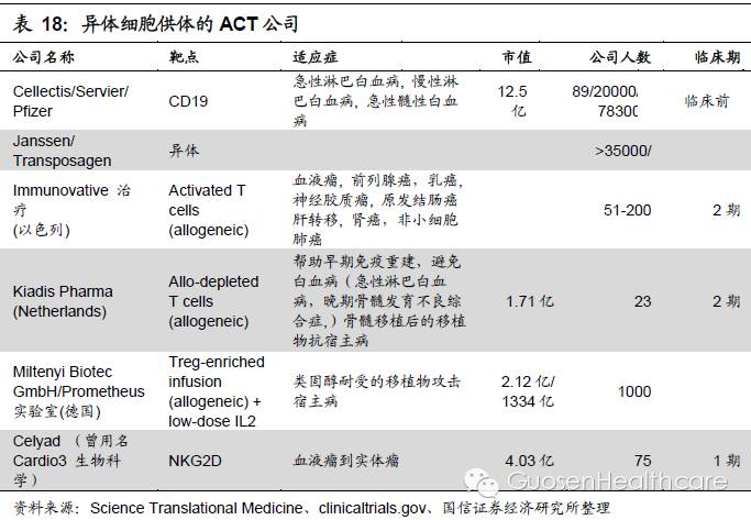 CAR-T、TCR-T、NK、TIL等ACT海外公司众多。诺华、Juno、Kite等CAR-T临床进度领先企业推进血癌更多适应症;Cellectis、Adaptimmune、Nantkwest、Bellicum等通过特色技术后发制人;Sorento、西比曼等也存在技术突破的机会。在之前大跌之后,癌症免疫治疗板块存在主题投资的可能性。