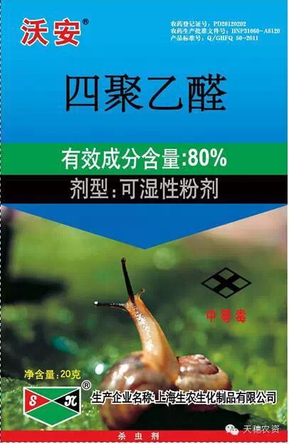 沃安 80%四聚乙醛可湿性粉剂,有效成分含量高,喷洒使用,杀螺更直接,效果更突出。