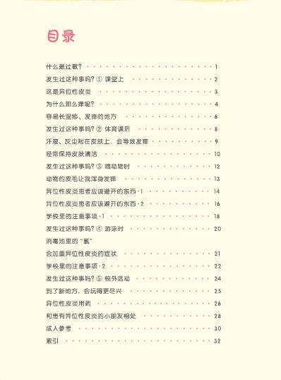 从出门穿戴,到不同的季节过敏症会有什么变化;从居家卫生,到学校值日时的注意事项;从饮食,到和植物动物接触时的注意事项……几乎面面俱到。